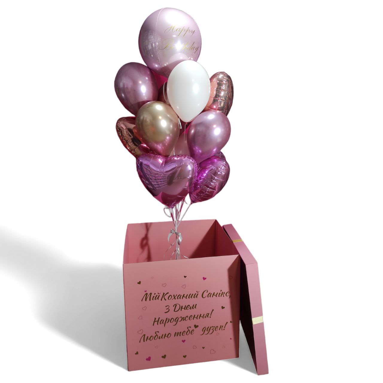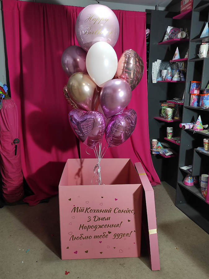 Колір коробки, колір повітряних кульок, напис на коробці, умови доставки - все це узгоджується з менеджером при оформленні замовлення