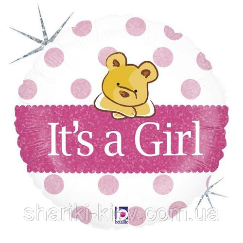 3202-0310 Кулька фольгована з гелієм Круг Ведмедик "It's a baby girl" 18" Замовляй кульки Фольговані кульки на народження дитини . Доставка по Києву.