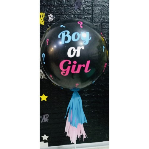 Велика непрозора кулька з гелієм, наповнена конфетті колір якого відповідає статі дитини: рожевий - якщо чекають дівчинку, блакитний - якщо чекають хлопчика.