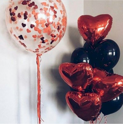 - кулька-гігант 60 см прозора з конфетті (сердечки) - 1 шт.