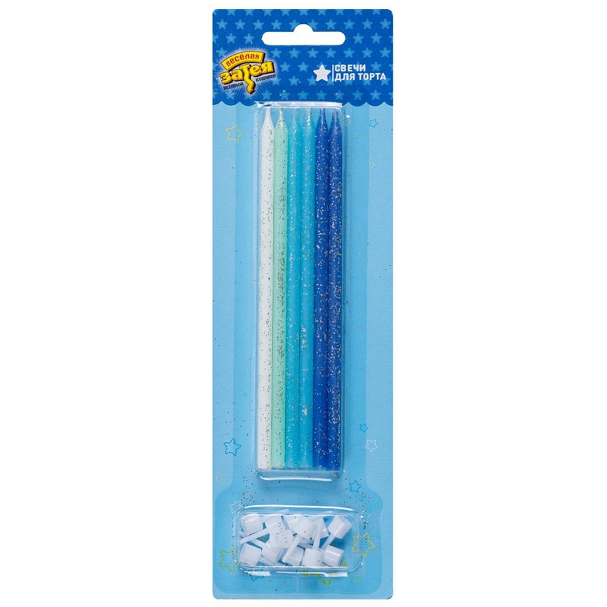 1502-5281 Упаковка свечей в торт Голубой микс блеск (12шт/уп.), размер 14 см