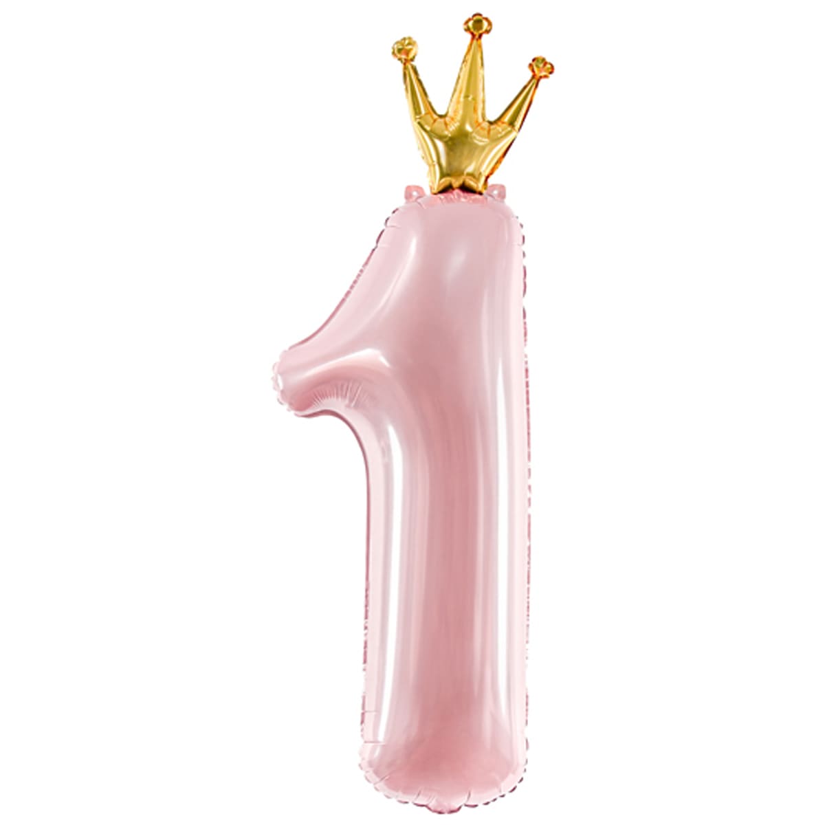 3207-3170 Шар фольгированный с гелием Цифра рожева 1 корона, размер 37 см