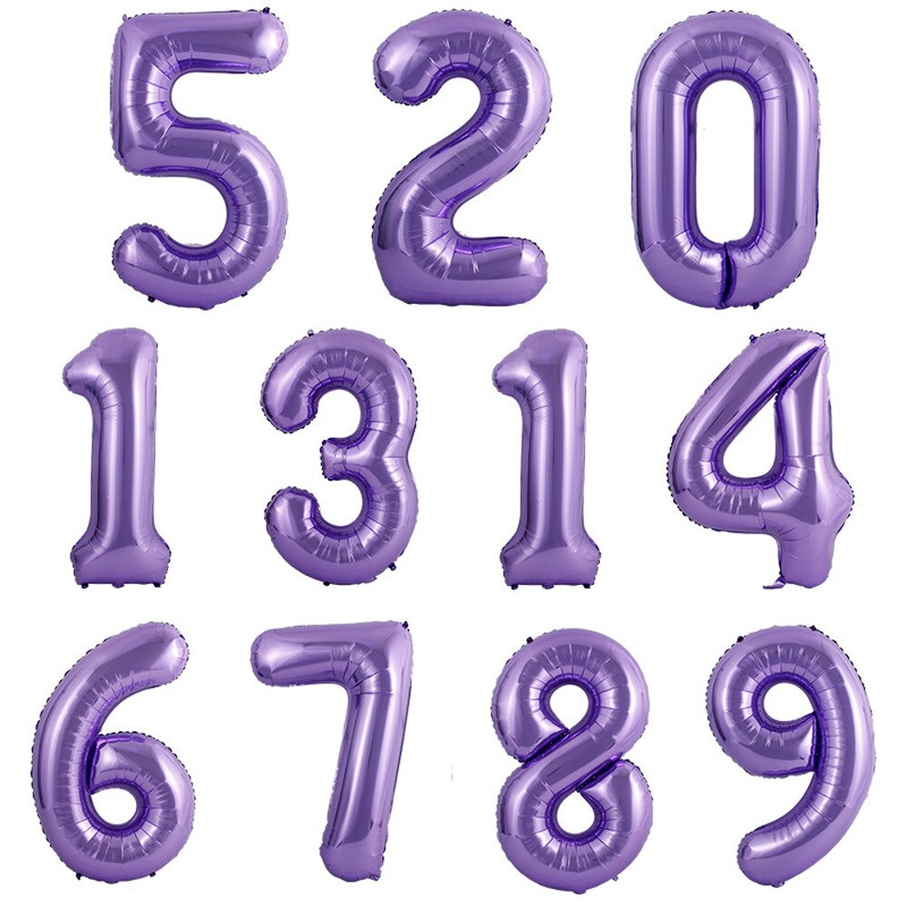 3207-3464 Фольгированный шар с гелием Цифры Металлик Лиловая (от 0 до 9 на выбор) 40", размер 102 см