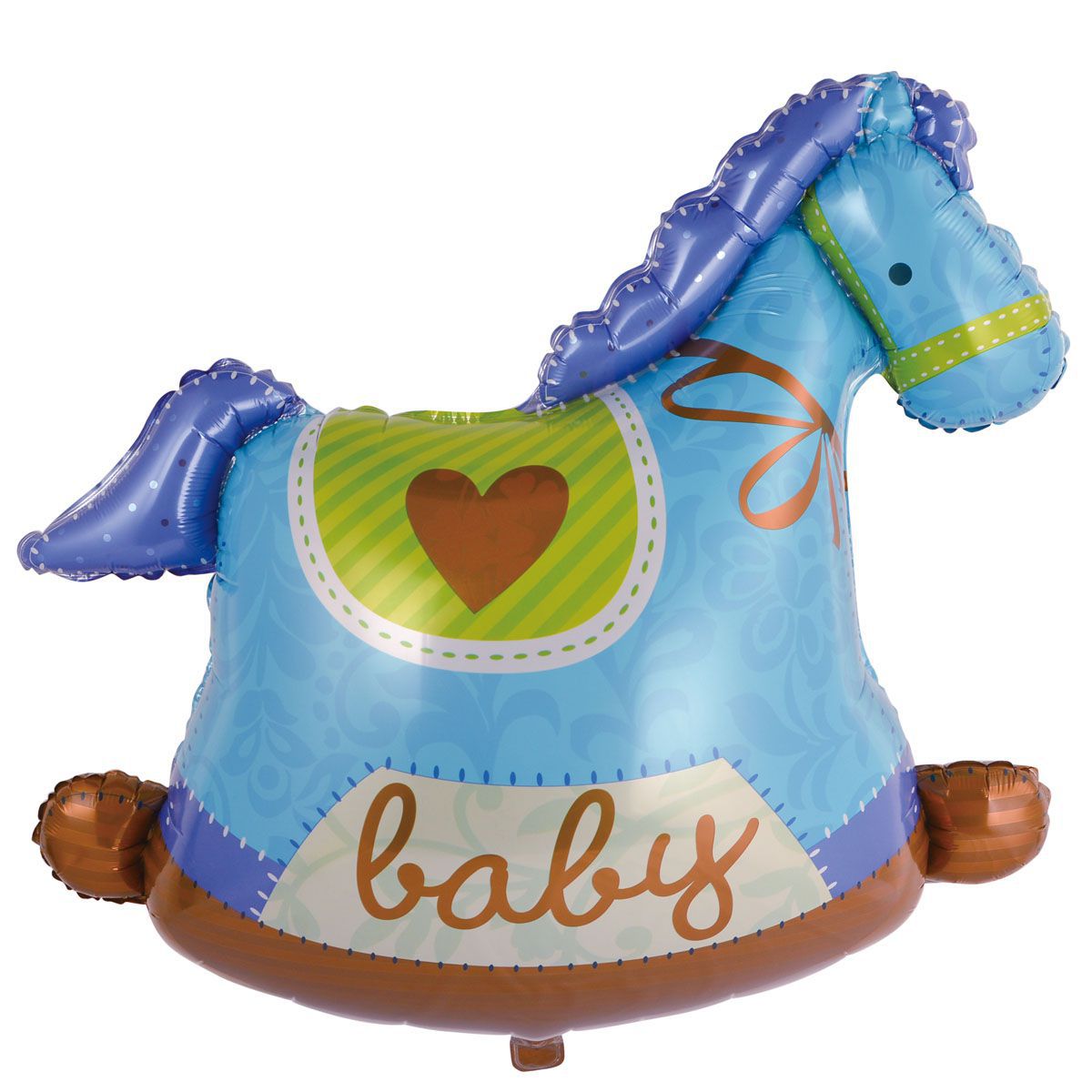 1207-3009 Шар фольгированный с гелием Лошадка качалка голубая 35" Заказывай шары на рождения ребенка . Доставка по Киеву. Шары на встречу с роддома.