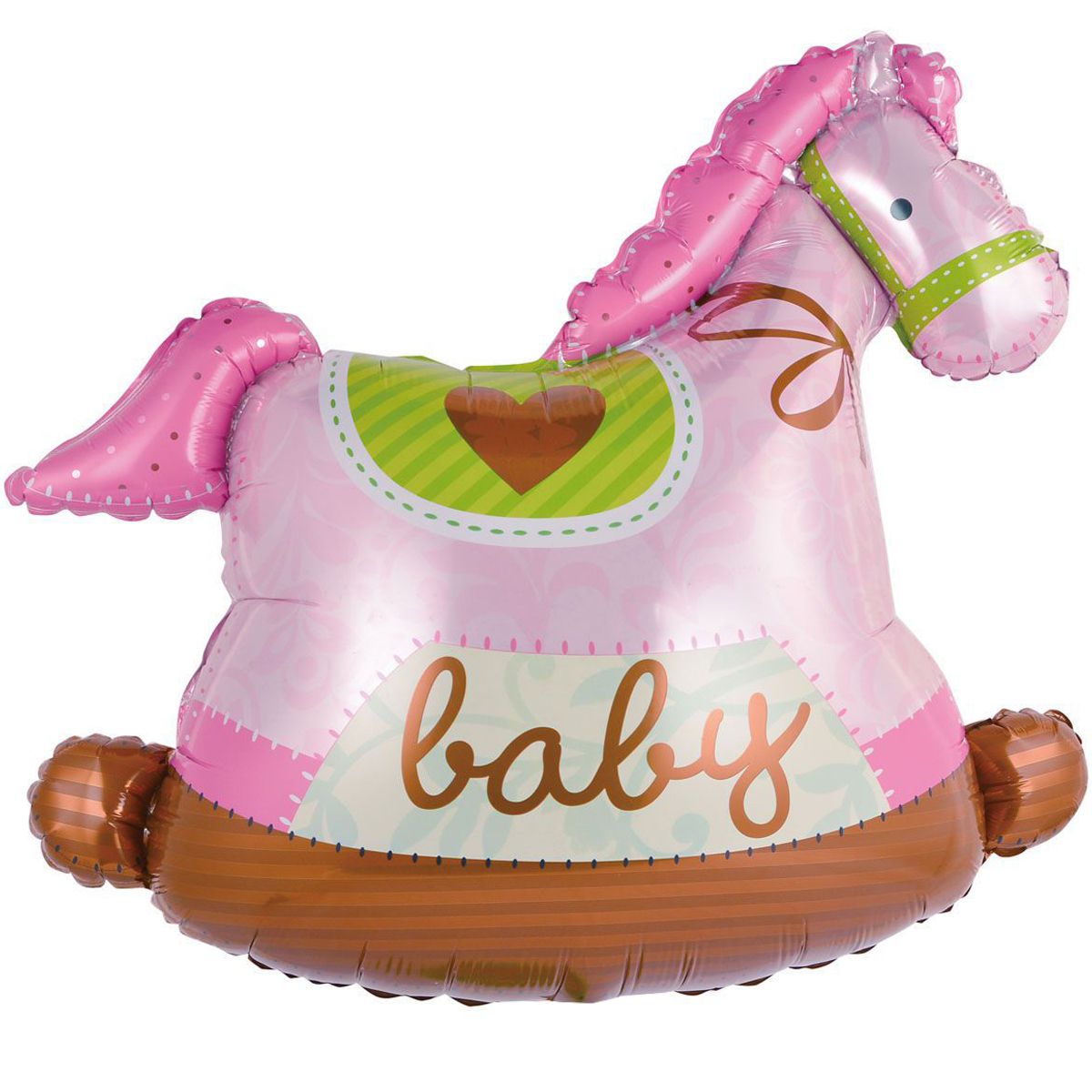 1207-3008 Шар фольгированный с гелием Лошадка качалка розовая " Заказывай шары на рождения ребенка . Доставка по Киеву. Шары на встречу с роддома.