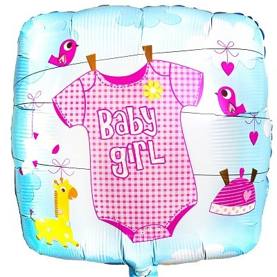 5202-0003 Шар фольгированный с гелием Круг "Baby girl" Боди на голубом 18" Заказывай шары на рождения ребенка . Доставка по Киеву. Шары на встречу с роддома.