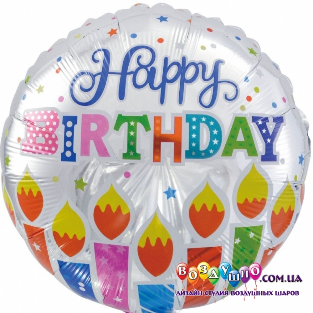1202-2520 Шар фольгированный с гелием Круг HB Свечи разноцветные 18", размер 45 на 0 см Заказывай шары Фольгированные шары на День Рождения с Доставкой по Киеву.