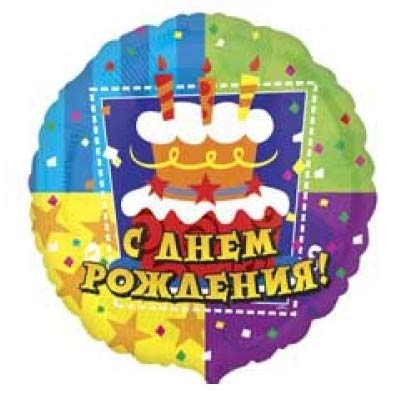 1202-1755 Шар фольгированный с гелием Круг С ДР Торт 18", размер 45 на 45 см Заказывай шары Фольгированные шары на День Рождения с Доставкой по Киеву.