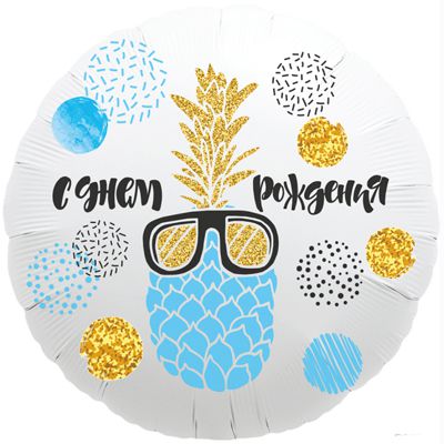 1202-2829 Шар фольгированный Круг С ДН Ананас 18", размер 45 на 45 см Заказывай шары Фольгированные шары на День Рождения с Доставкой по Киеву.