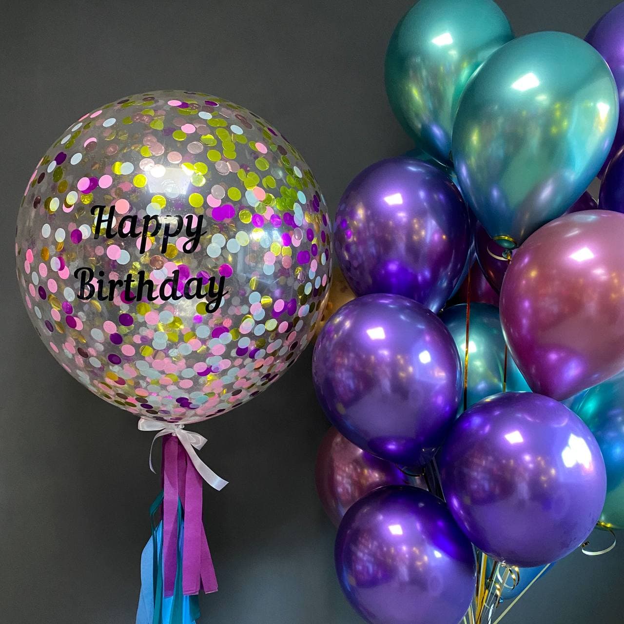 - шар латексный 31" прозрачный с конфетти + Ваша индивидуальная надпись и кисточки тассел - 1 шт.