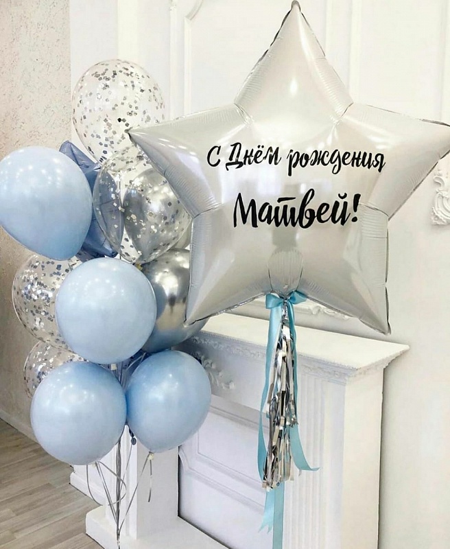- звезда фольгированная 36" с кисточками тассел + Ваша индивидуальная надпись - 1 шт.