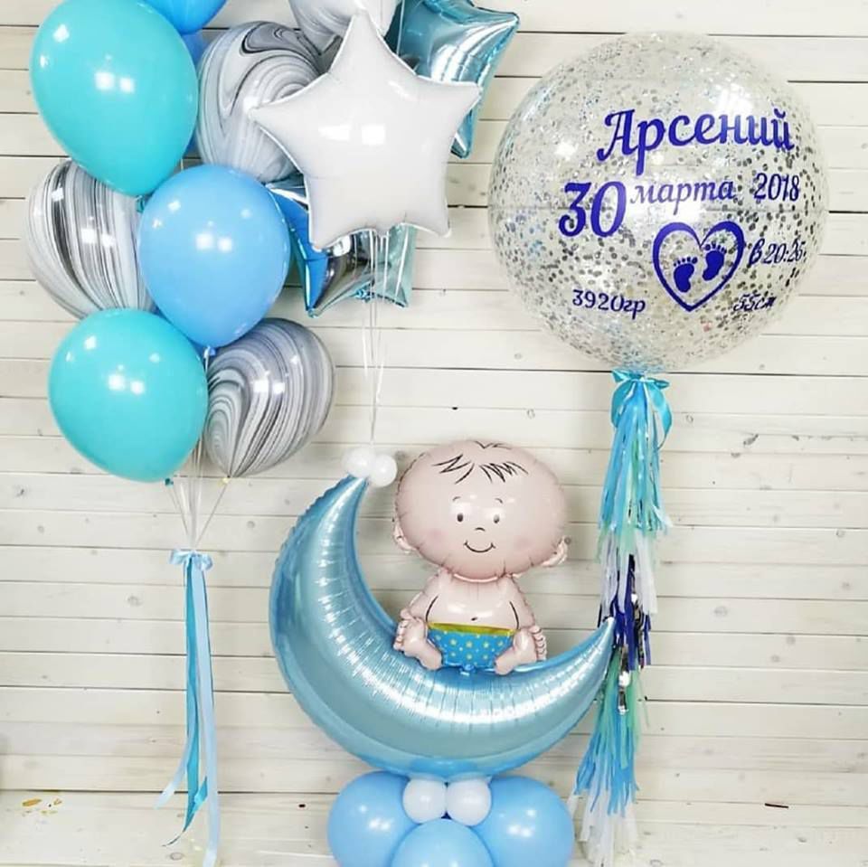 Заказывайте у нас наборы гелиевых шариков на рождение ребенка . Доставим быстро и качественно!