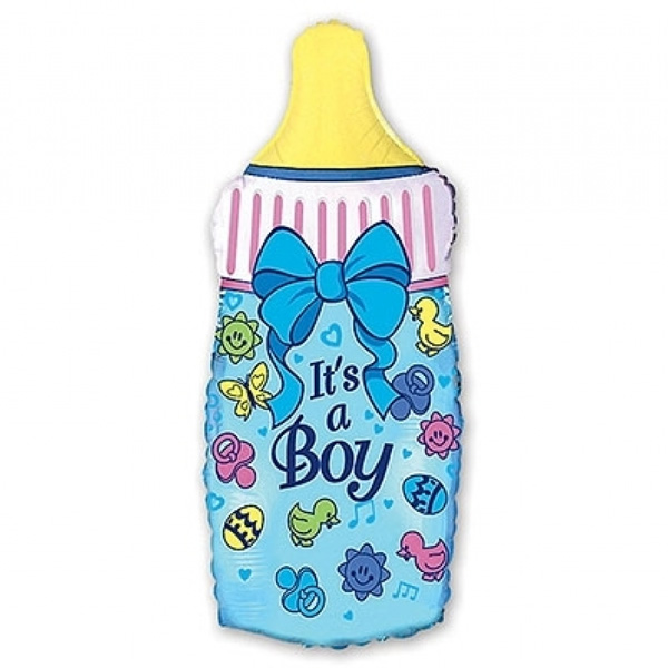 1207-0446 Шар фольгированный с гелием Бутылочка голубая " Заказывай шары на рождения ребенка . Доставка по Киеву. Шары на встречу с роддома.