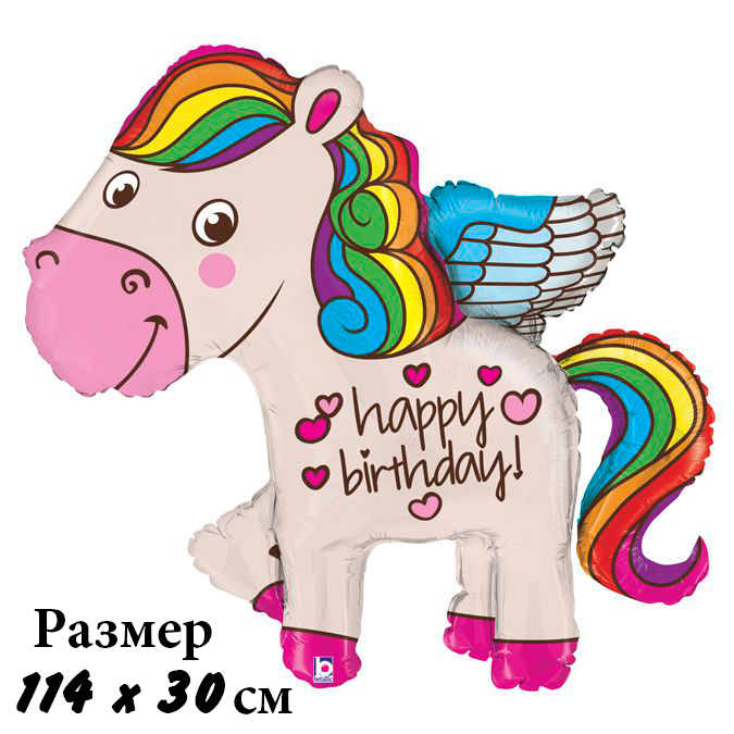 3207-1148 Шар фольгированный с гелием фигура Пони Happy Birthday, размер 30х114 см Заказывай шары фольгированные шары зверята . Доставка по Киеву.