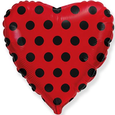 3202-0505 Шар фольгированный с гелием Сердце Горох черный 18, размер 45х45 см Заказывай шары Фольговані кульки на День Рождения . Доставка по Киеву. Фольгированные шары с гелием на разную тематику.