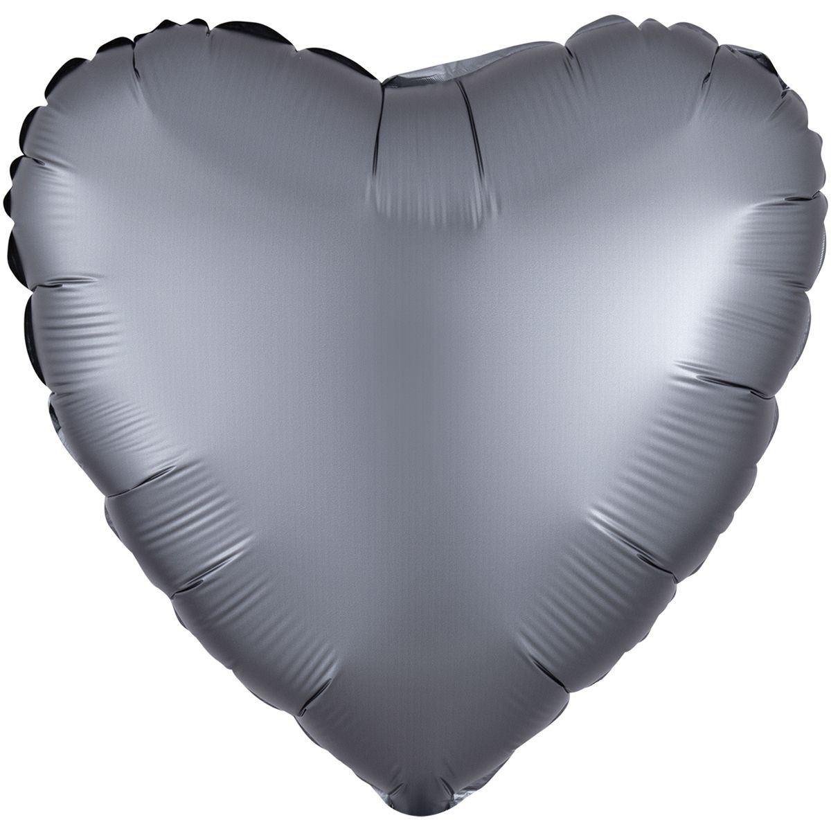3204-0577 Шар фольгированный с гелием Сердце сатин графит 18", размер 45 см