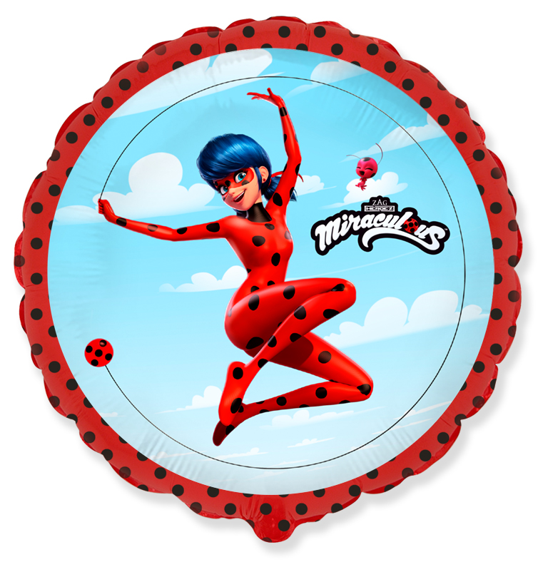 3202-1129 Кулька фольгована Круг Леді Баг у стрибку 18, розмір 0х0 см Замовляй кульки Фольговані кульки на день народження . з доставкою по Києву. фольговані кульки мультгерої.