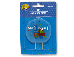 1502-2068 Свечка в торт не ароматизированая  1-й ДР мальчик (1шт/уп.), размер 10 см