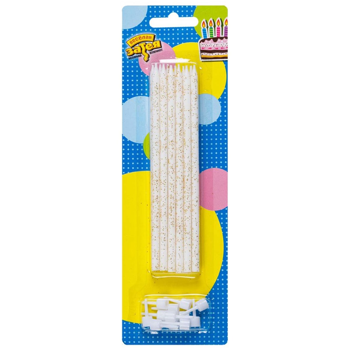 1502-5279 Упаковка свечей в торт  Белые блеск (12шт/уп.), размер 14 см