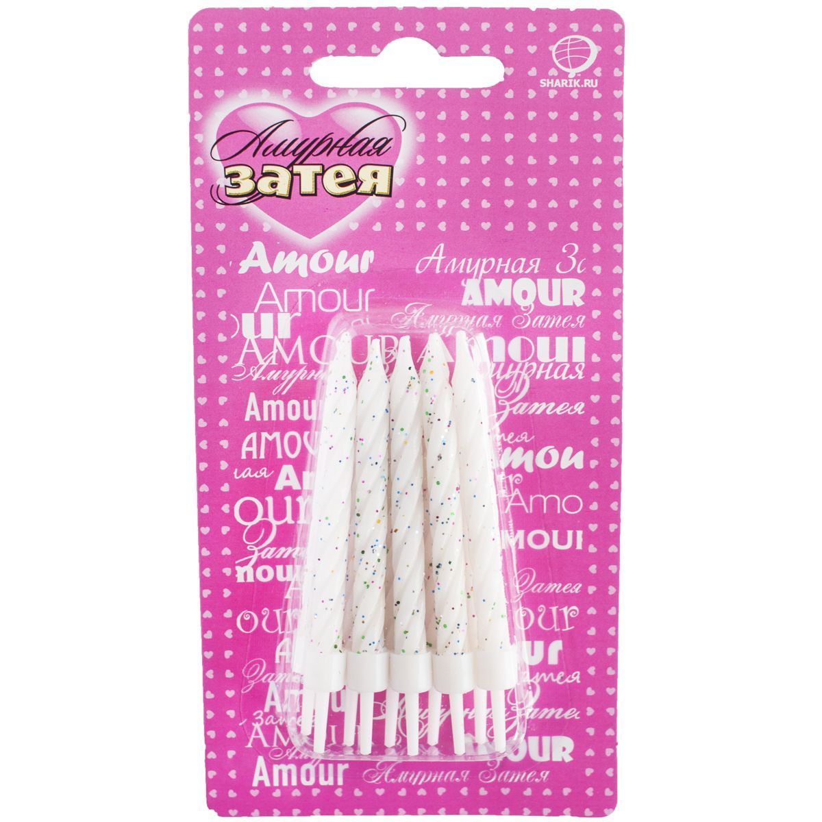 1502-1154 Упаковка свечей в торт не ароматизированые  Белые с блестками (10шт/уп.), размер 5 см
