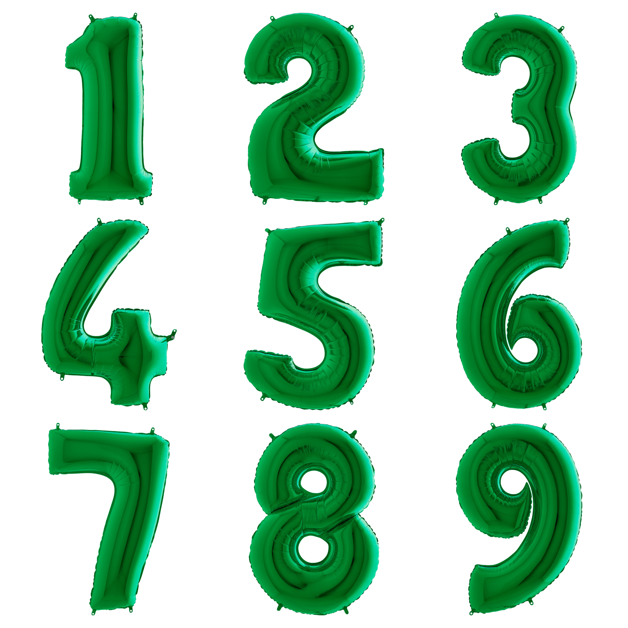 1207-0010 Фольгированный шар с гелием  Цифры Зелёные (от 0 до 9 на выбор) 40", размер 102 см