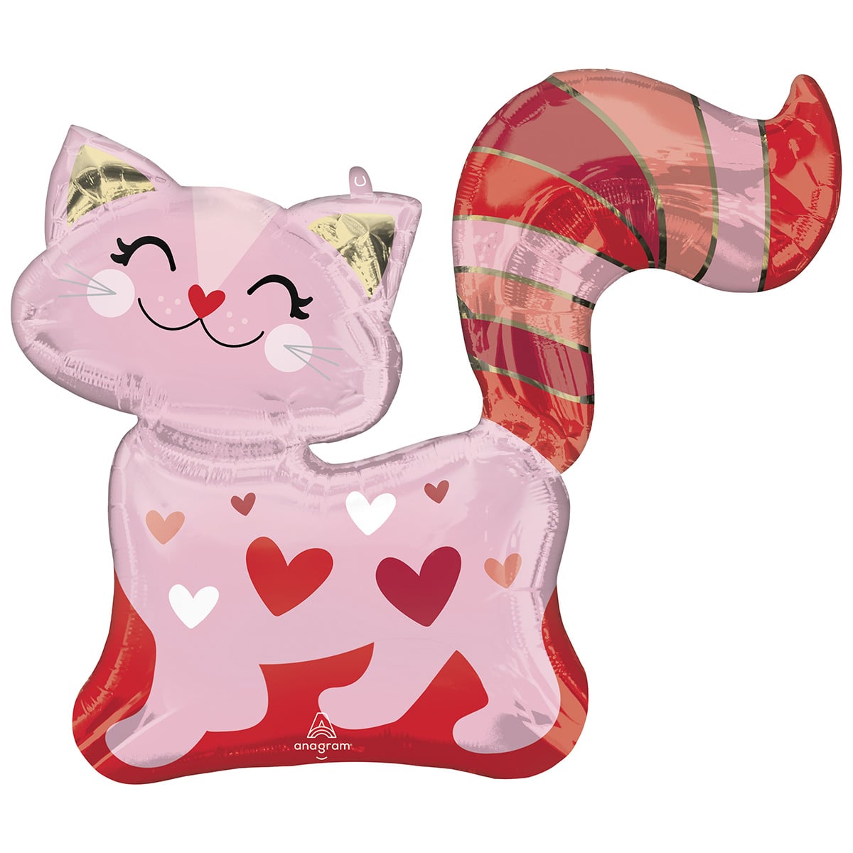 3207-2956 Шар фольгированный с гелием Кошечка розовая с сердцем, размер 78х66 см
