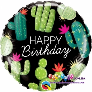 3202-1041 Шар фольгированный с гелием Круг HB Кактусы 18", размер 45 на 45 см Заказывай шары Фольгированные шары на День Рождения с Доставкой по Киеву.