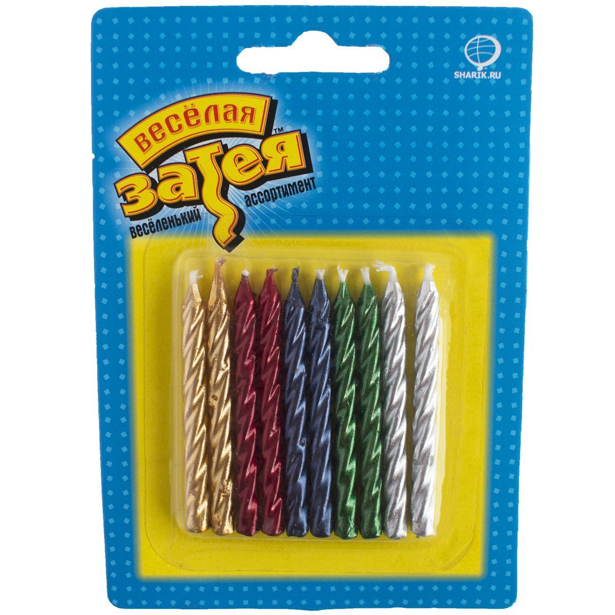 1502-1137 Упаковка свечей в торт не ароматизированые Металлик разноцветные (10шт/уп.), размер 5 см