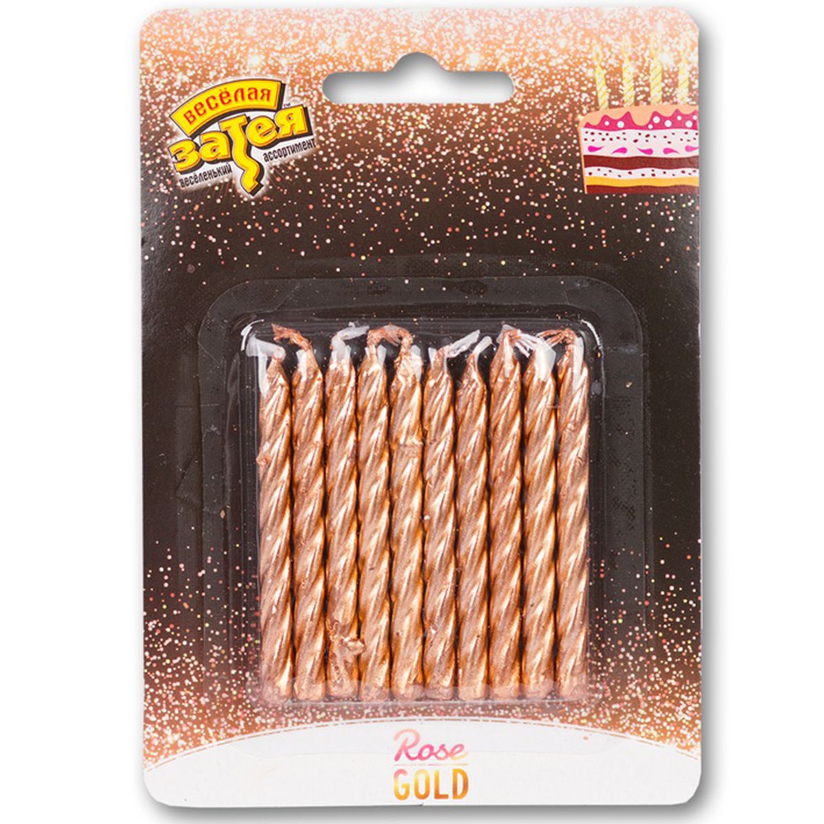 1502-3010 Упаковка свечей в торт не ароматизированые Металлик розовое золото (10шт/уп.), размер 5 см
