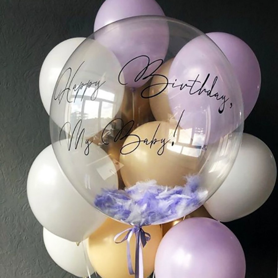- шар баблс 22" с перьями + Ваша индивидуальная надпись - 1 шт.