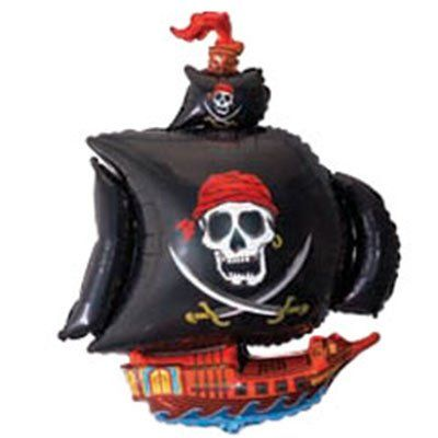 1207-1043 Шар фольгированный с гелием Пиратский корабль черный, размер 78х105 см Заказывай шары Фольговані кульки на День Рождения .для Мальчика Доставка по Киеву.