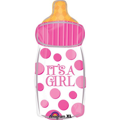 1207-3072 Шар фольгированный с гелием Бутылочка горошек розовая " Заказывай шары на рождения ребенка . Доставка по Киеву. Шары на встречу с роддома.