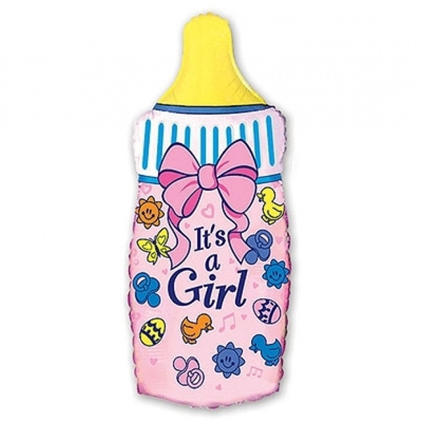 1207-0447 Шар фольгированный с гелием Бутылочка розовая " Заказывай шары на рождения ребенка . Доставка по Киеву. Шары на встречу с роддома.