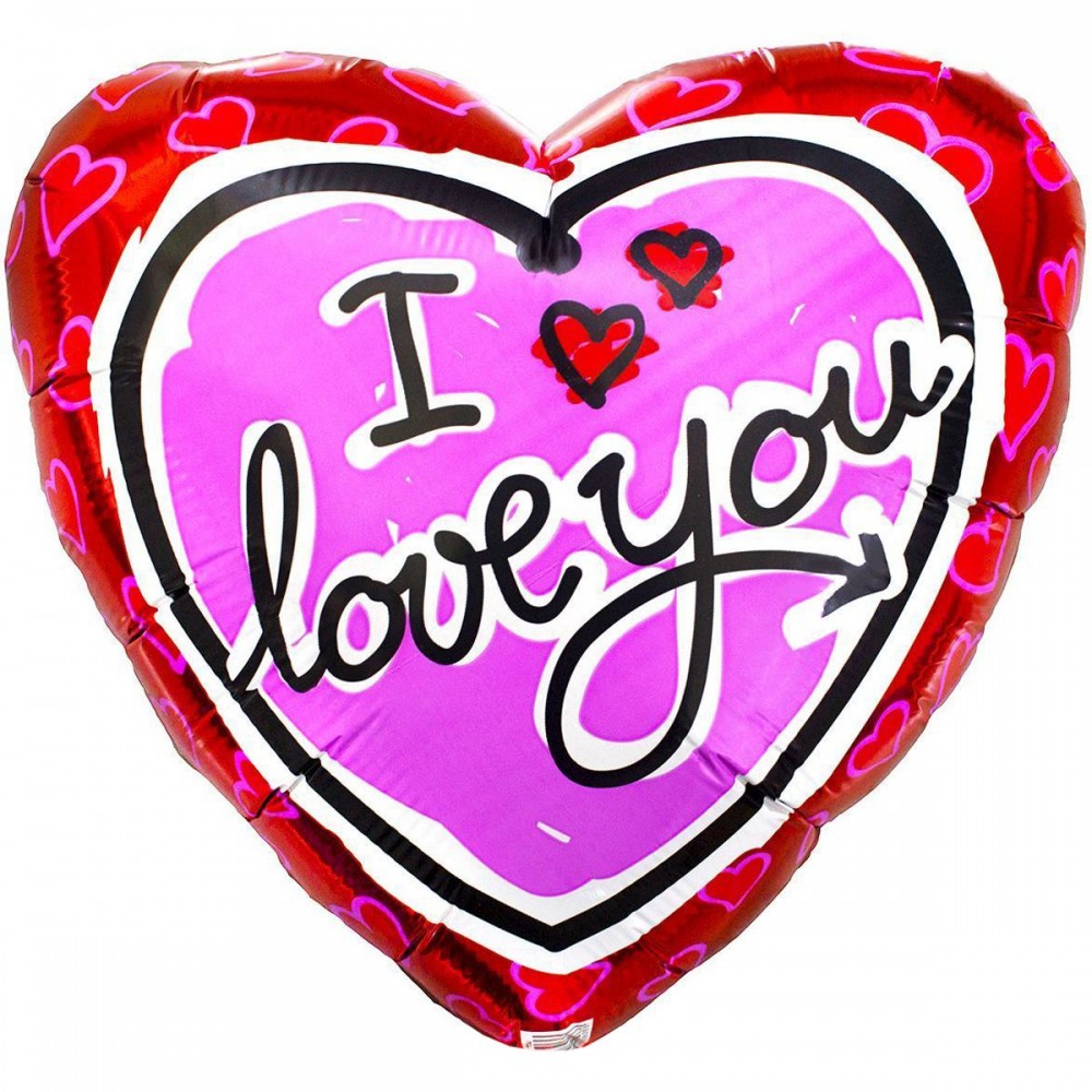 1202-3238 Шар фольгированный с гелием Сердце ILY розовое на красном 18", размер 46х46 см Заказывай фольгированные шары в Киеве Фольговані кульки любов і почуття. Фольгированные шары Киев. Доставка по Киеву.
